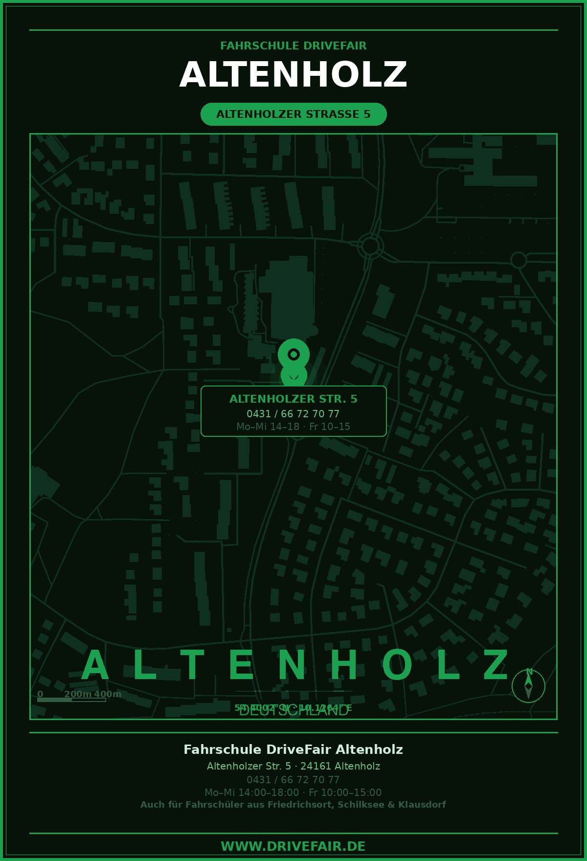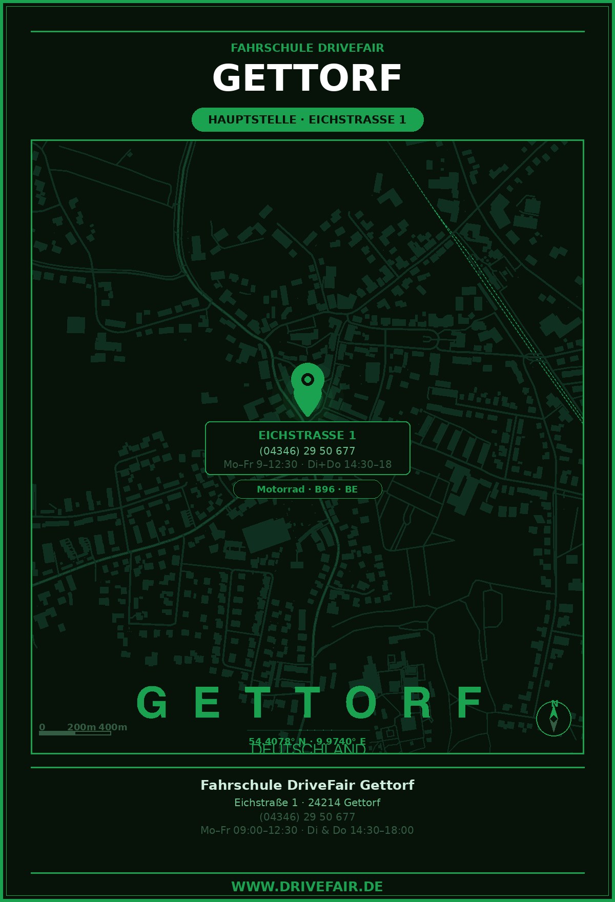 Die Fahrschule DriveFair Standorte findest du in Gettorf, Altenholz & Heikendorf.